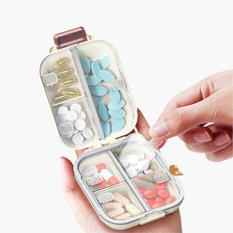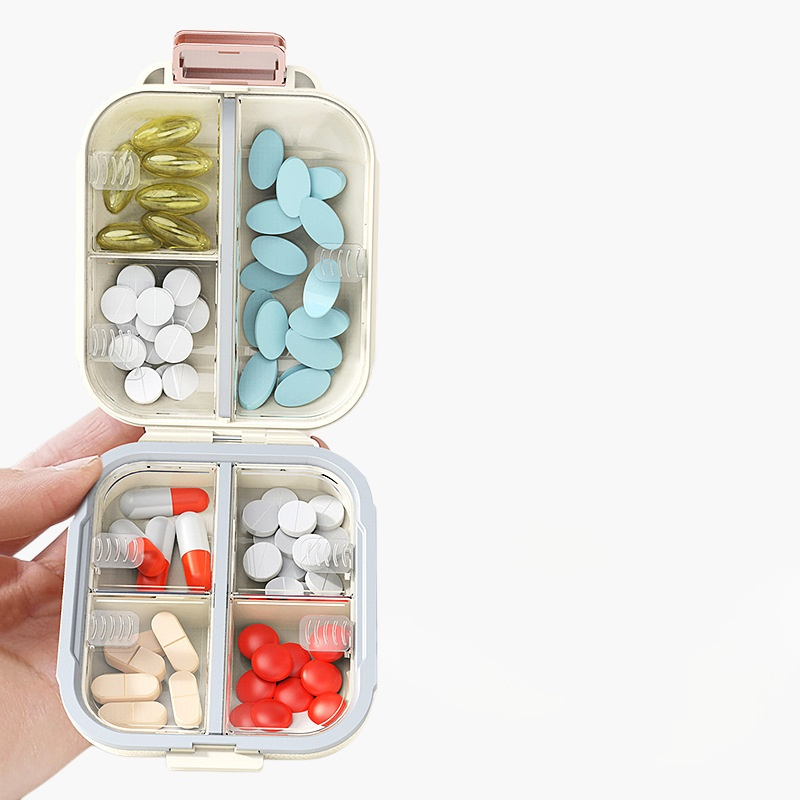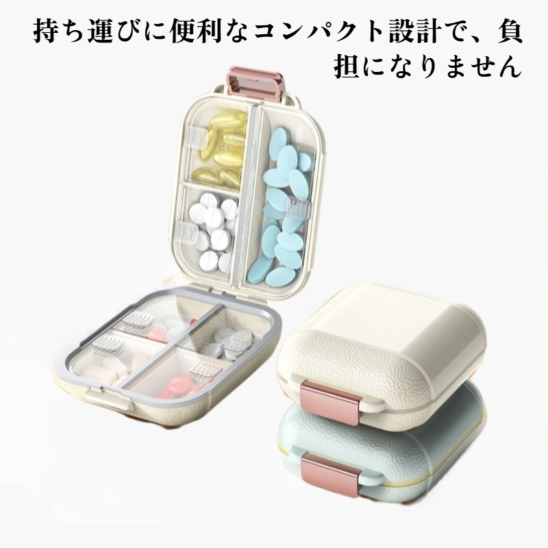 コンパクトな携帯用薬箱。仕切り付きで整理整頓しやすく、旅行や出張に便利。軽量素材で持ち運び簡単。